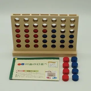 上の穴からチップを入れ、たて、よこ、ななめが先に4つ揃った方が勝ちです。